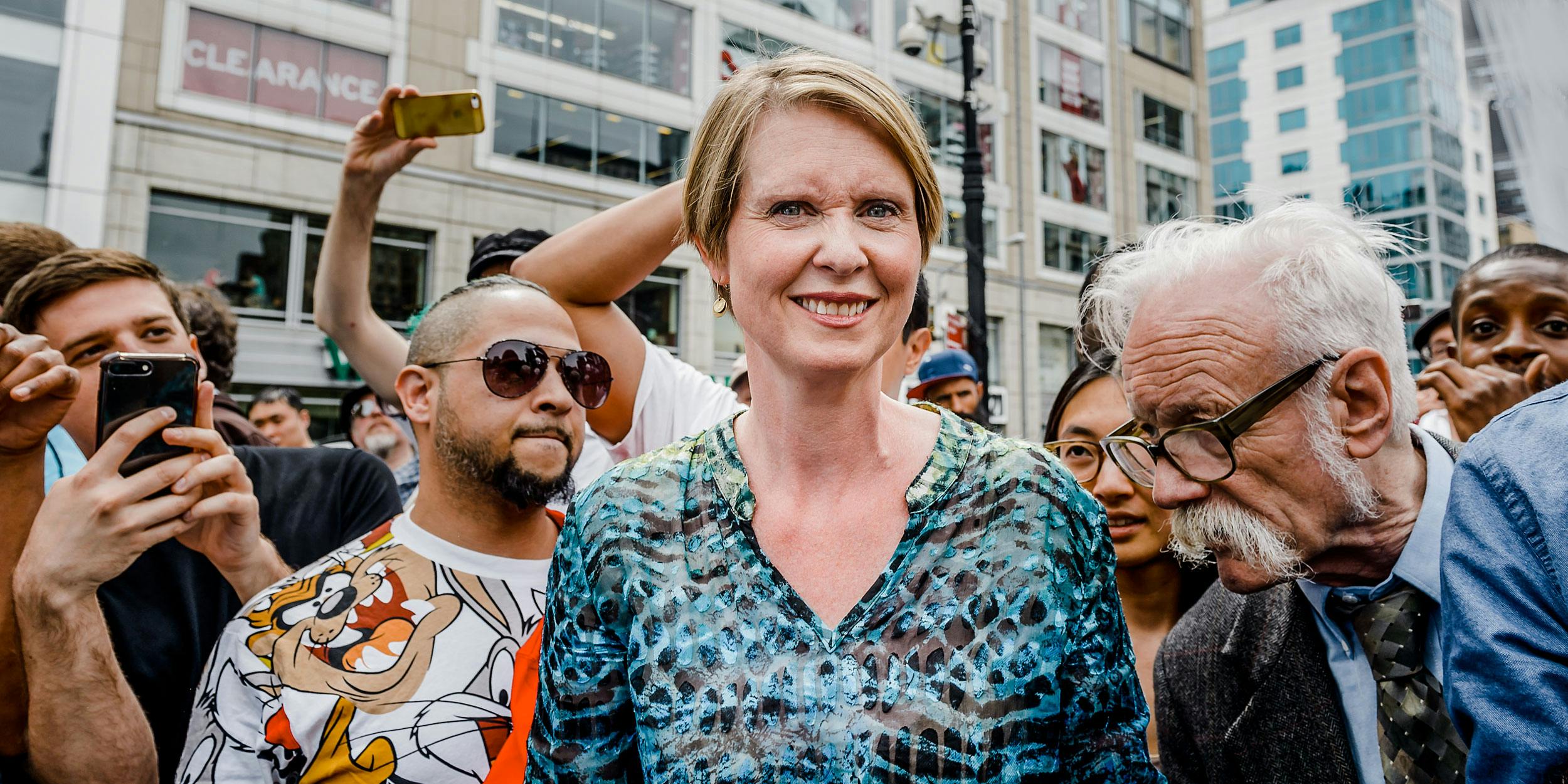 UNION SQUARE PARK, NEW YORK, UNITED STATES – 2018/05/05: Cynthia Nixon, a candidate running for governor – The NYC Cannabis Parade and Rally, New Yorks longest running annual pro-cannabis demonstration, returned for its 47th year. The event started in Midtown Manhattan and marched to Union Square Park for an afternoon rally, with a powerful roster of elected officials, including two state legislators and three City Council Members, speaking from stages in Midtown and Union Square Park throughout the day. (Photo by Erik McGregor/Pacific Press/LightRocket via Getty Images)